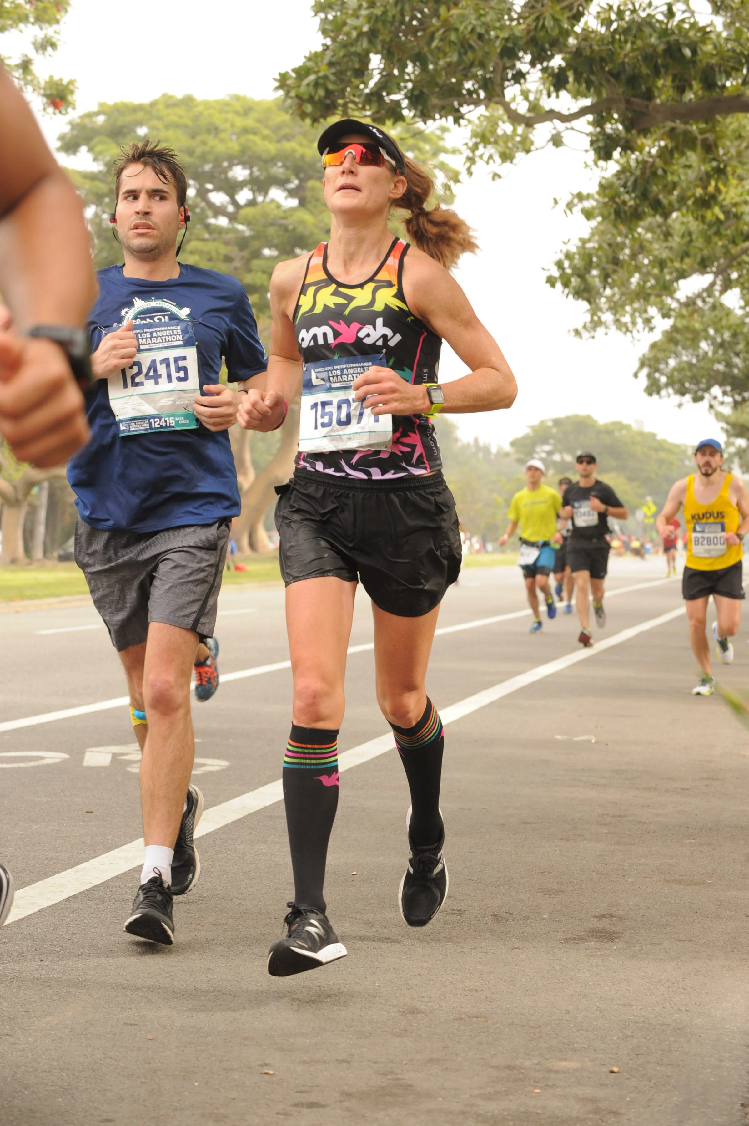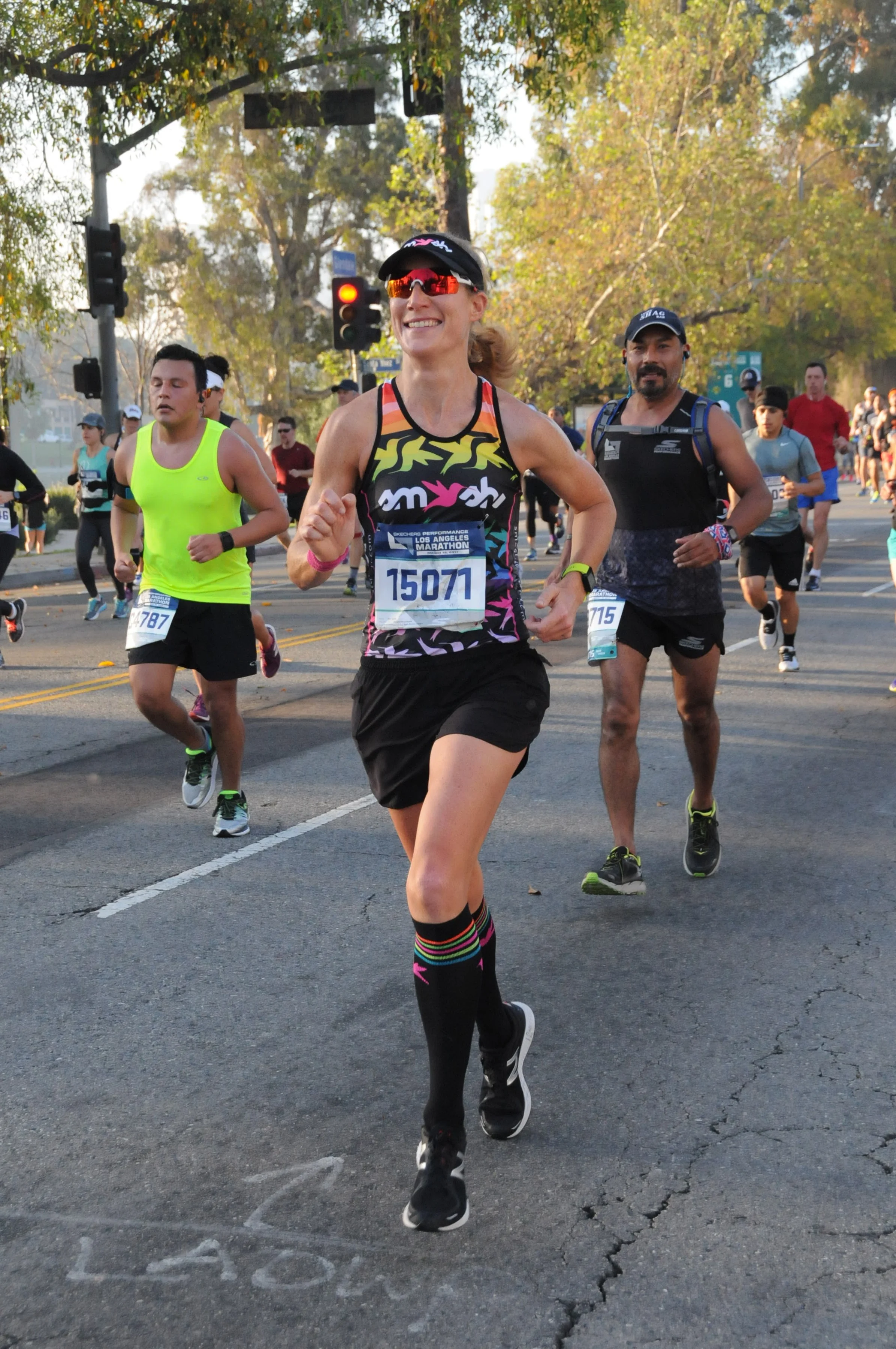 Nevertheless, I had the time of my life. I did experience a few hiccups, of course, but that is all part of the marathon adventure. It’s too long of a race for everything to go right. For example, I was not in a seeded corral this year, which meant I had to start WAY farther back in the crowd. Oh, well. Next, a few yards after the mile one marker a Students Run LA runner ate it right in front of me, poor thing. I stopped to help her up, but she got herself up, she was just stunned while staring at her skinned knees, and absorbing the shock of face-planting, still I told her, “You’re fine, you’re fine. The toughest part of the race is over!” Therefore, maybe I lost those two minutes within the first two miles, but I wouldn’t have wanted the race to go any other way.