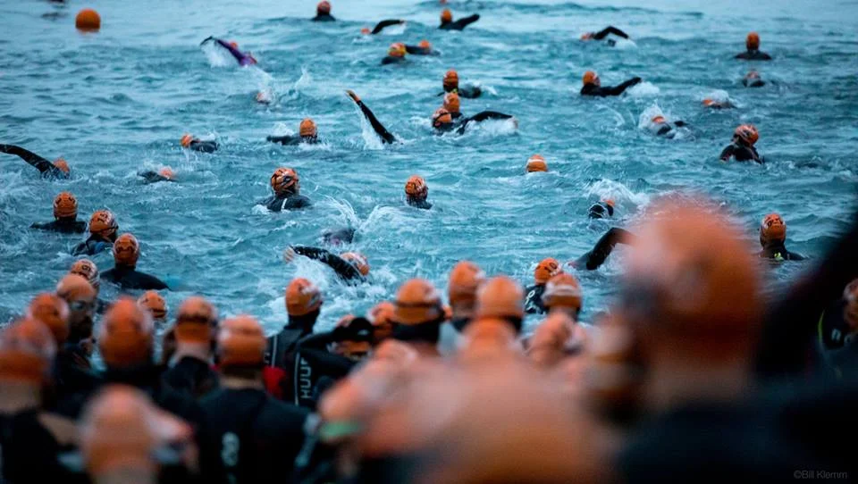 It was early and raining, but I climbed into my wetsuit seamlessly and was soon on my way toward the buses to sweep us off to the start at Miller’s Landing. I met a fellow racer just as we stepped onto the buses that I had been chatting with online for months, Brent from Houston, so it was great to start the day with a fated connection. Also, it was quite memorable to watch the locals and supporters cheer and clap for us as we drove away, that was a first. Yet, everything about this race as a “first”. It would be the first swim, ride, run, and every other occurrence in-between for all of us.