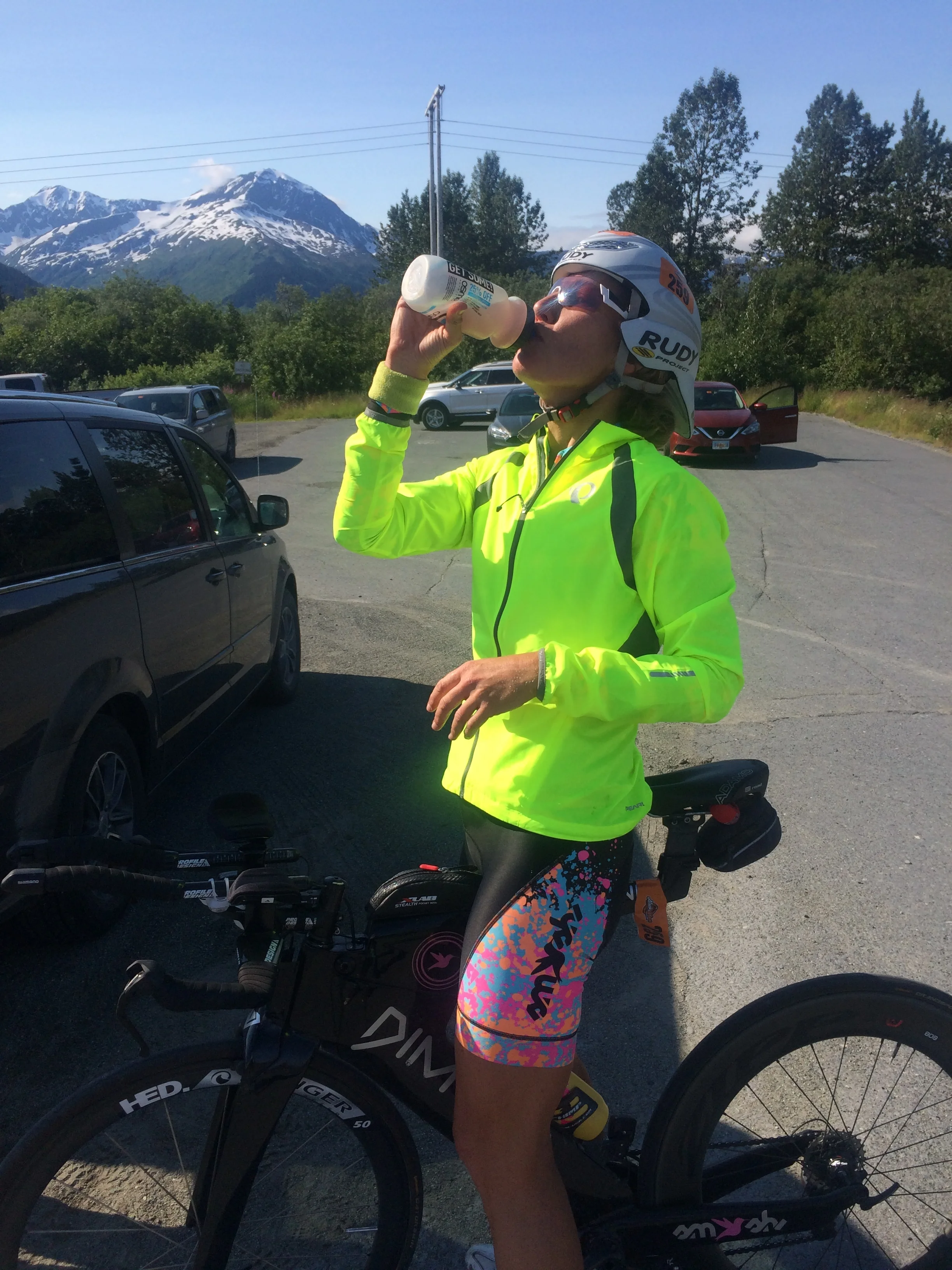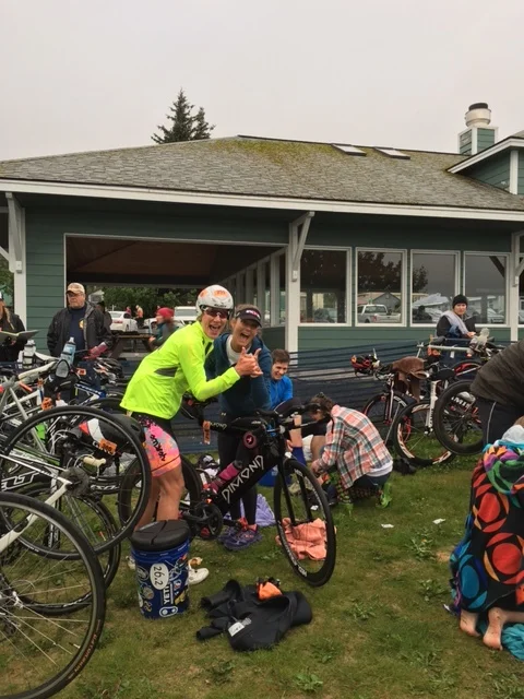 One of the fun parts about this race was that our support team was really imbedded in it, and since my sister Sarah was my team Captain, and had seen me naked plenty of times in our lifetime, I chose her to the be the one to help me get changed into my dry Smash-Dimond race kit after emerging from the frosty waters of Resurrection Bay in T1, (Transition). It is rare that a non-racer is allowed in the transition area, so it was cool for Sarah to see up close what all of us athletes go through prepping for the swim and ride.