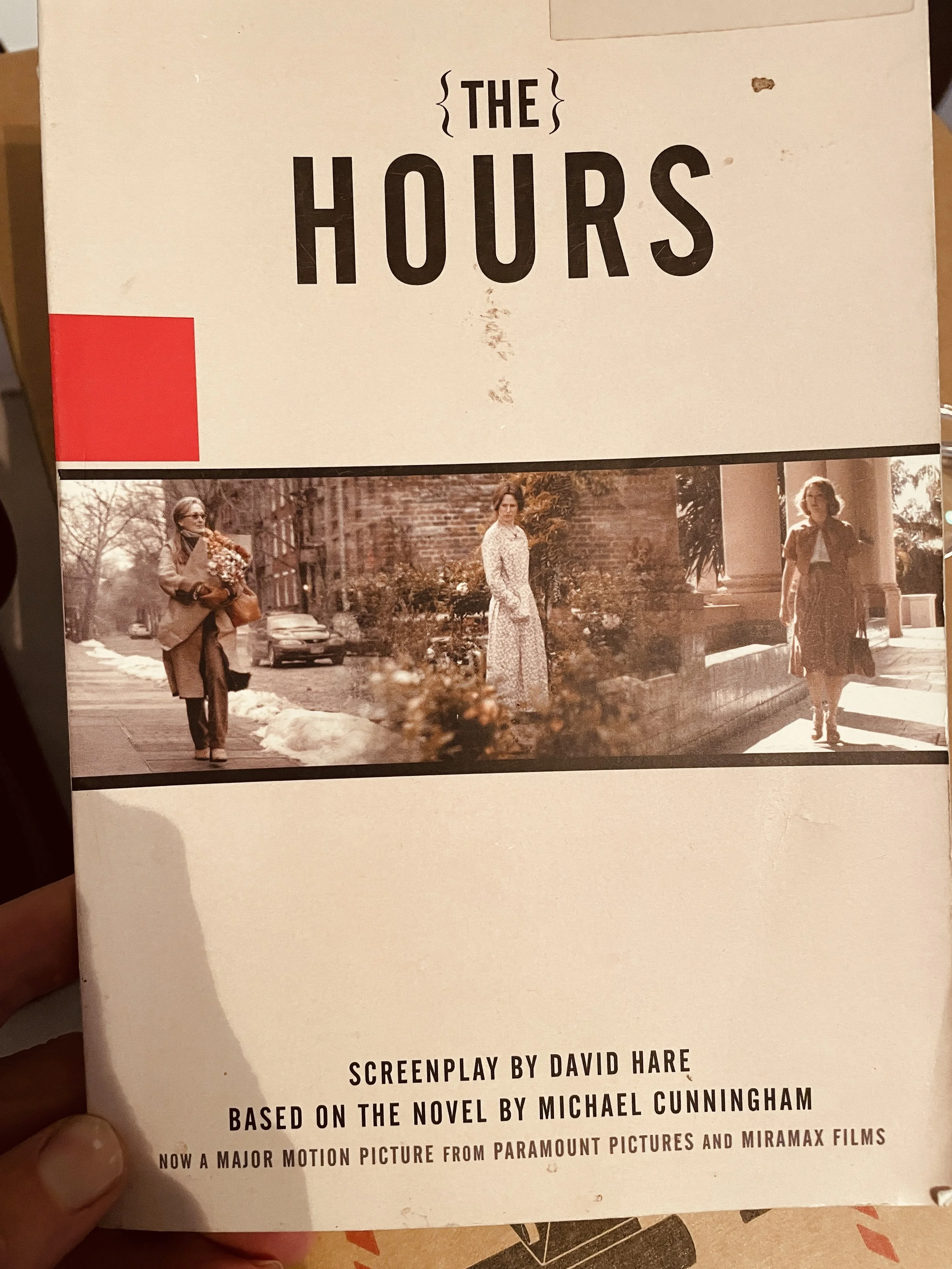 I changed things up last week by reading the screenplay for one of my favorite films, The Hours by David Hare. I am flushing out an idea and kicking off my own screenplay project so studying and enjoying this gorgeous, yet tragic story adapted for the screen from the novel by Michael Cunningham made for an emotionally riveting afternoon at Starbucks. I highly recommend watching the movie as well.