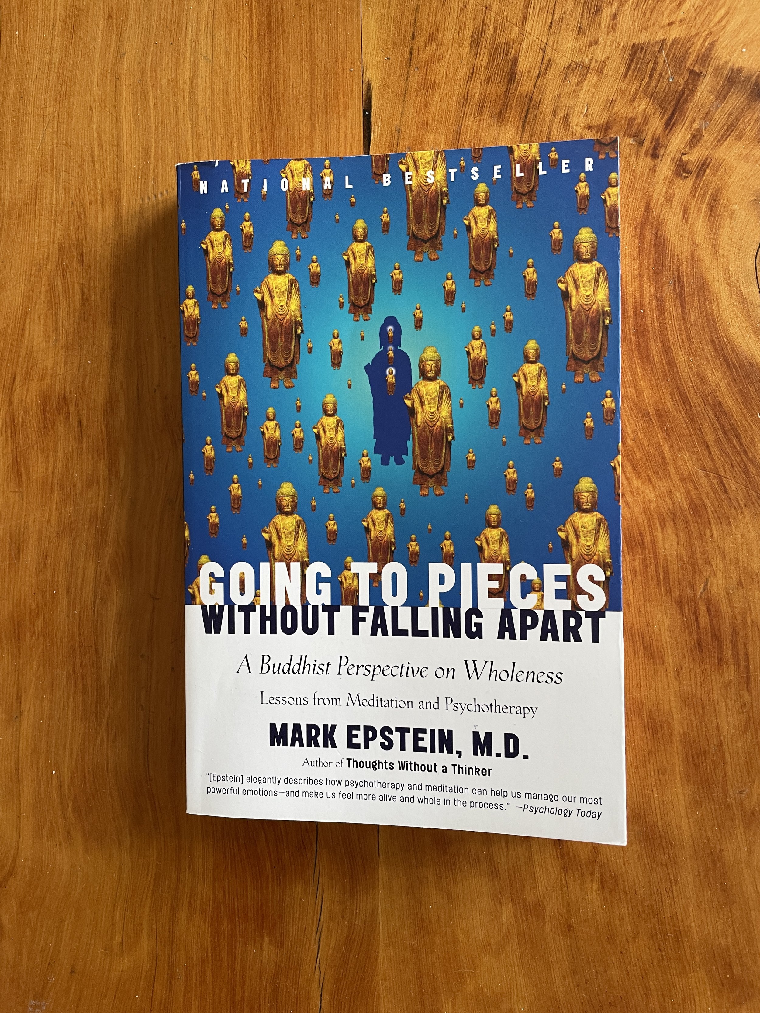 The book I read last week was the revered and highly recommended Buddhist and psychotherapy combo, “Going To Pieces Without Falling Apart,“ written by Dr. Mark Epstein.
